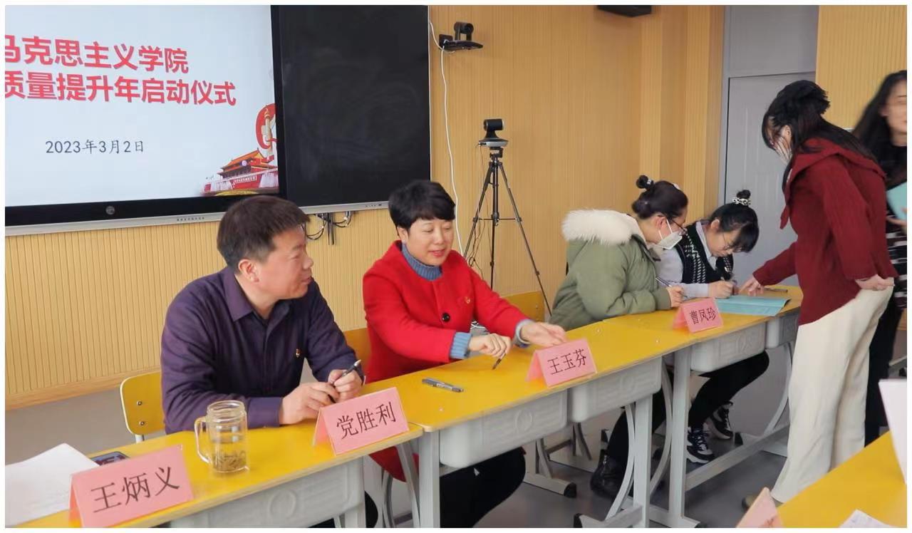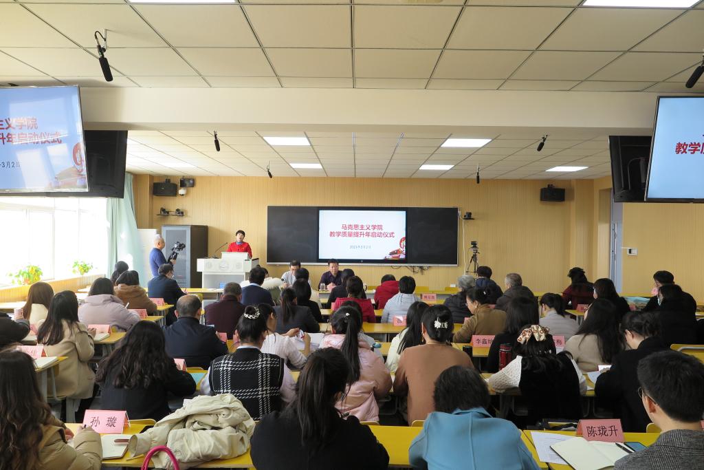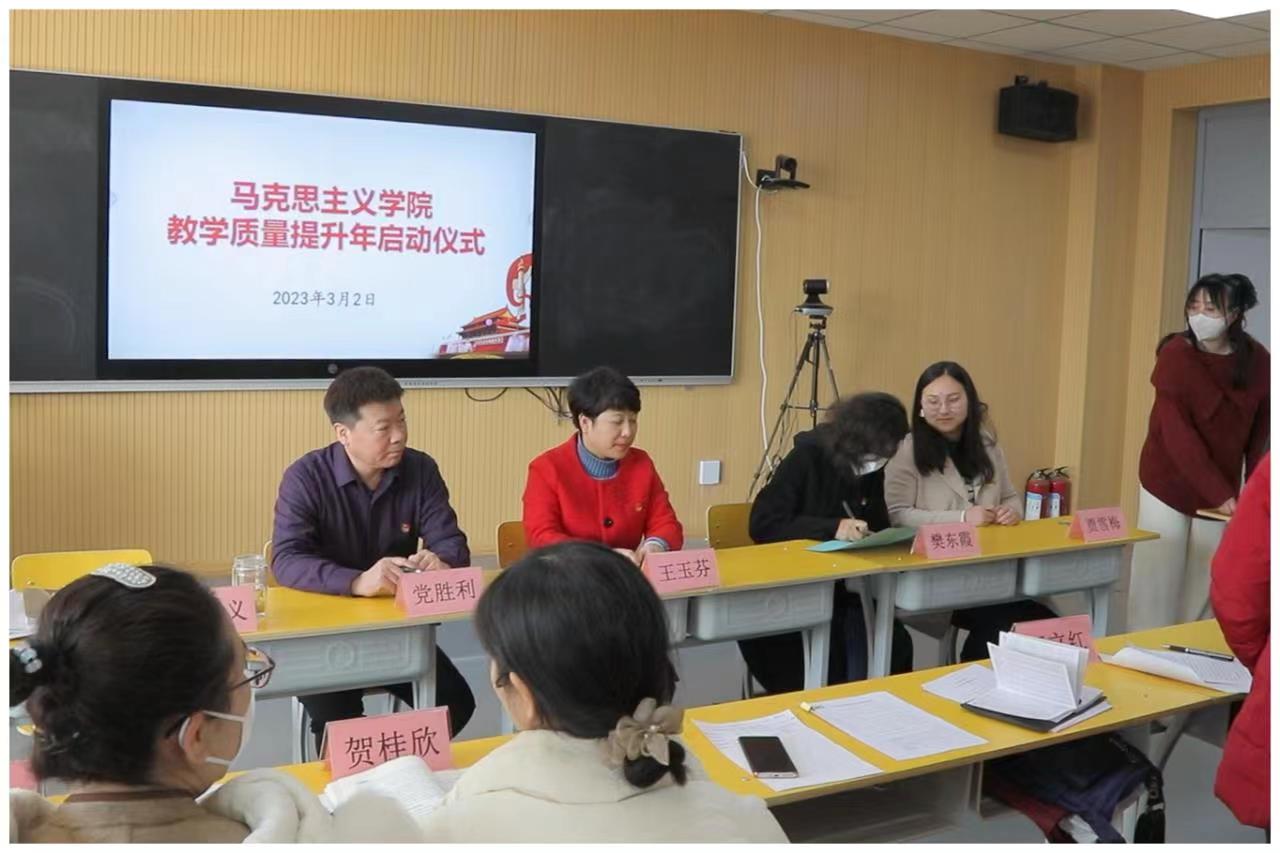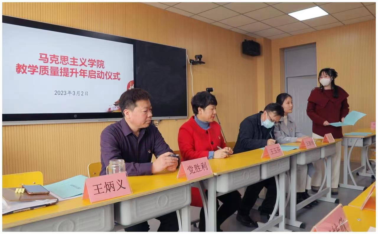 2023年3月2日下午,今年会jinnian官网(以下简称“马院”)在思政课智慧教室举行了“2023年思政课教学质量提升年”启动仪式。仪式由王炳义副院长主持,马院全体教师参加了仪式。