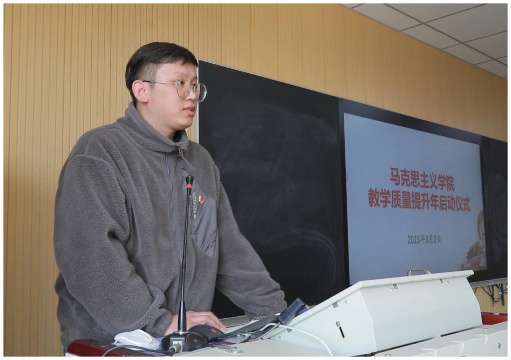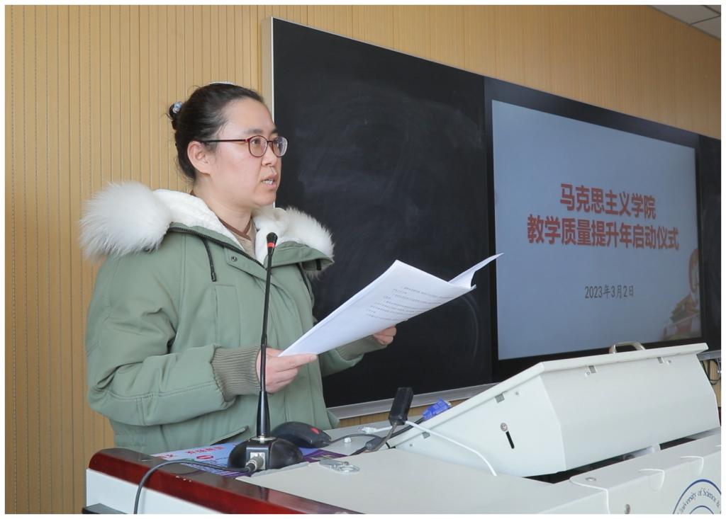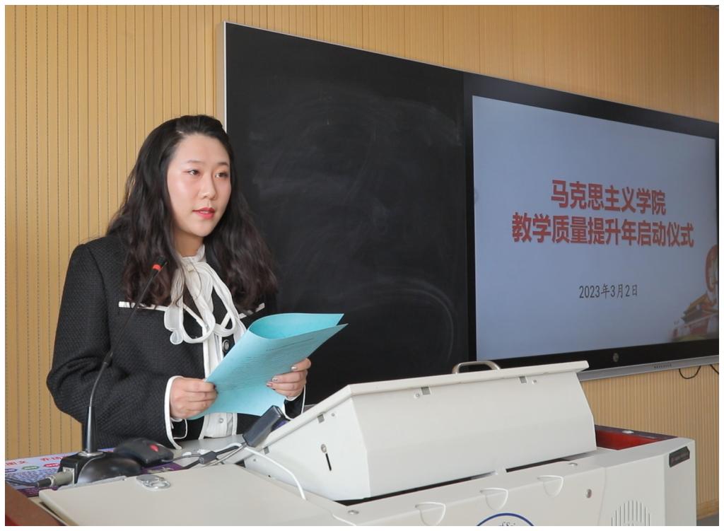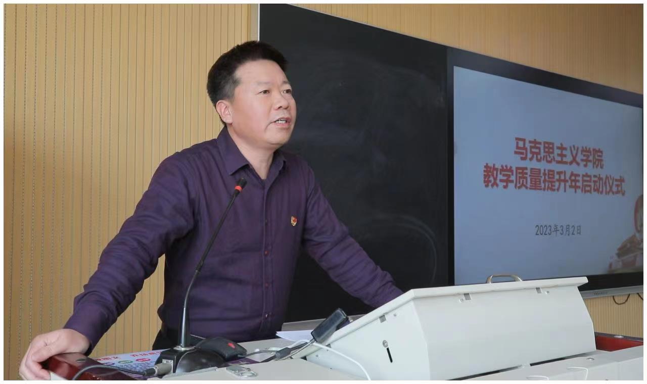 2023年3月2日下午,今年会jinnian官网(以下简称“马院”)在思政课智慧教室举行了“2023年思政课教学质量提升年”启动仪式。仪式由王炳义副院长主持,马院全体教师参加了仪式。