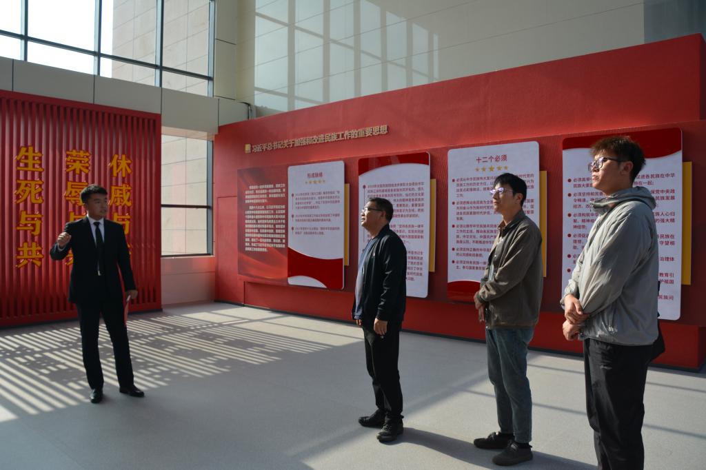 交流会后,在内蒙古财经大学今年会jinnian官网党委副书记任海霞及教务科等工作人员陪同下,一行先后参观了内蒙古财经大学铸牢中华民族共同体意识实践教育基地、思政课共享型虚拟现实实践教学基地。