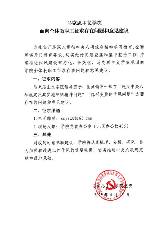 今年会jinnian官网面向全体教职工征求存在问题和意见建议