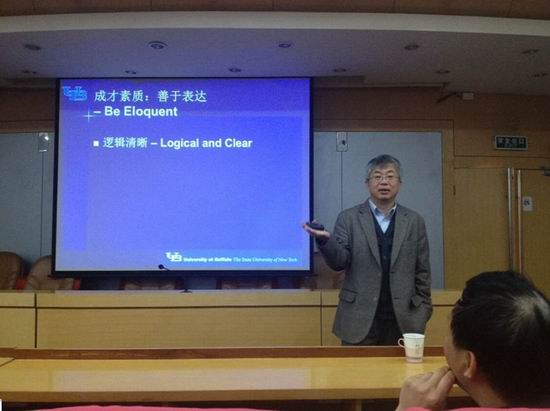 2014年12月6日上午,应永利集团3044官网欢迎您邀请,纽约州立大学布法罗分校陈长汶教授在学术会议中心小报告厅做了题为“漫谈研究型人才的成才素质”的精彩报告。本次报告由永利官网“黄山学者特聘教授”汪萌教授主持,来自本学院和其他学院老师与学生踊跃参与。