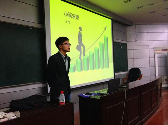 之后,2011级的两名已签约的学生代表,将自己求职中的经验与同学们进行了细致的分享。指出了求职中简历、笔试和面试的技巧与注意事项。