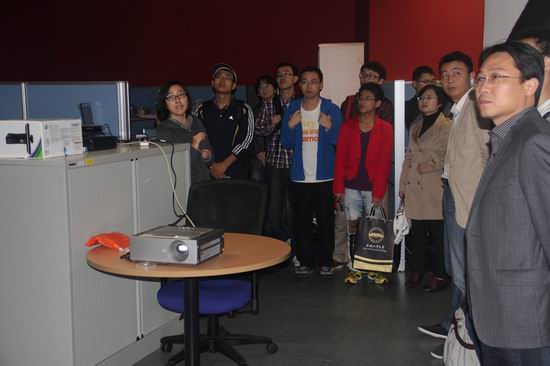 在香港城市大学,我们参观了其三维动作捕捉实验室、视频检索实验室等,负责接待的汪建平老师向我们介绍了城市大学计算机系的学生培养情况、研究方向及城市大学和境内各高校的联合培养研究生情况,最后,城市大学的6位优秀研究生与我校10级实验班学生进行了面对面的交流,话题涉及学习、未来发展与规划等。