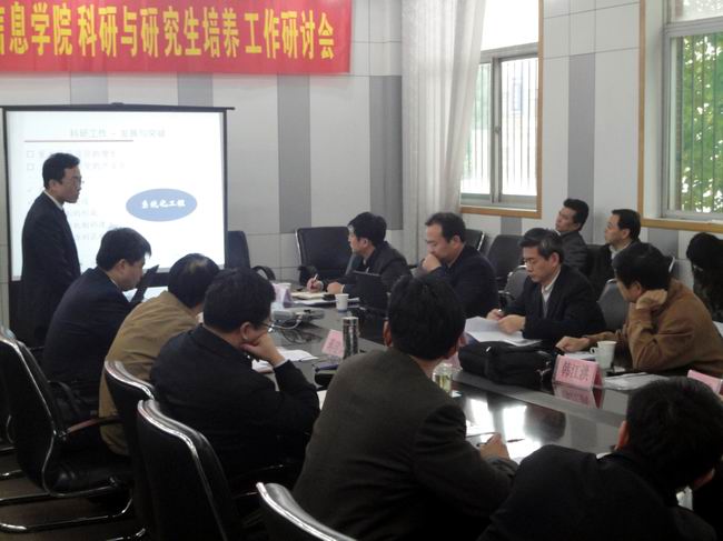 为促进科研工作的发展,提高研究生培养质量,积极推动研究型学院的建设,永利集团3044官网欢迎您于11月19日在校学术报告厅第三会议室举办了“2011年度科研与研究生培养工作研讨会”。永利集团3044官网欢迎您副校长韩江洪教授、赵韩教授,校学术委员会常务副主任高隽教授,校质量管理与评估办公室主任胡学钢教授,科研院科技合作办公室李军鹏主任,永利集团3044官网欢迎您院长刘晓平教授、书记蒋建国教授、副院长杨学志教授、副院长郑利平副教授、各系所中心负责人、导师代表及对议题感兴趣的教师参加了此次研讨会。会议由院长刘晓平教授主持。